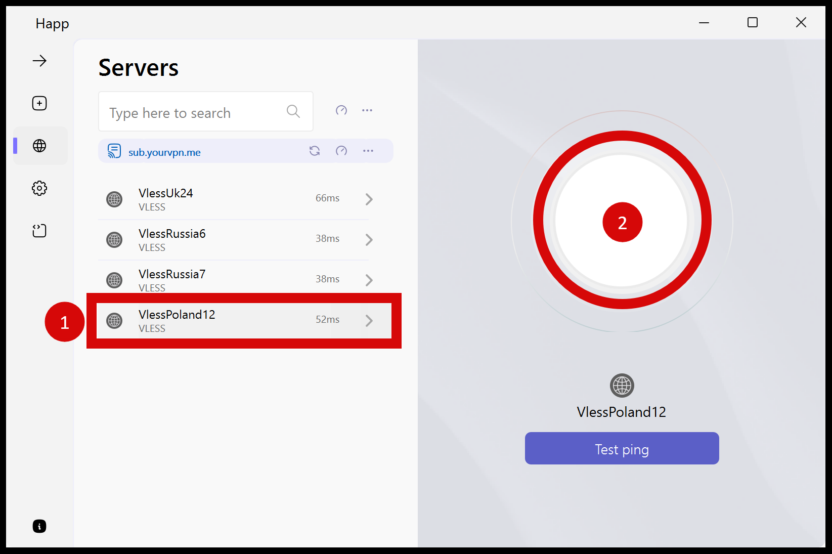 Нужная ссылка находится в телеграм-боте Your.VPN по кнопке “Моя подписка”