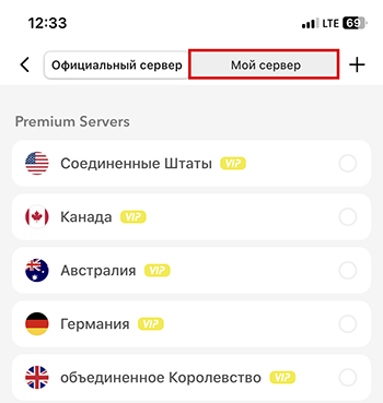 Для подключения/отключения к VPN нажать круглую кнопку в центре экрана (при первом включении ВПНа, телефон может запросить разрешение на создание настроек - необходимо нажать “Разрешить”)