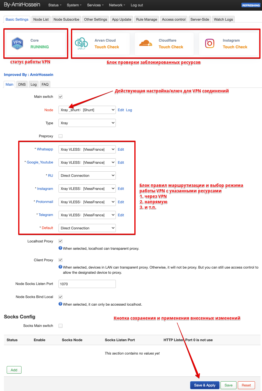 После всех изменений необходимо выполнять сохранение через "Save&Apply"