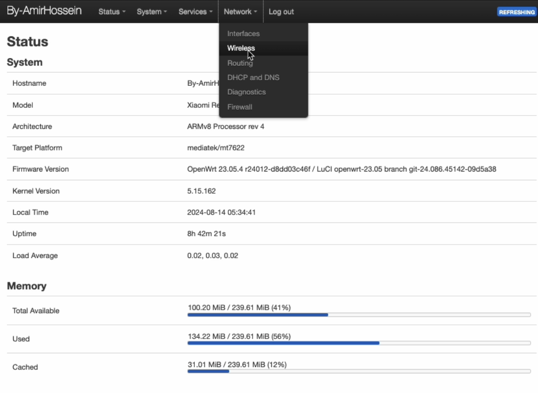 В главном меню в разделе “Network” выберите пункт “Wireless” для перехода в раздел настройки Wi-Fi